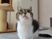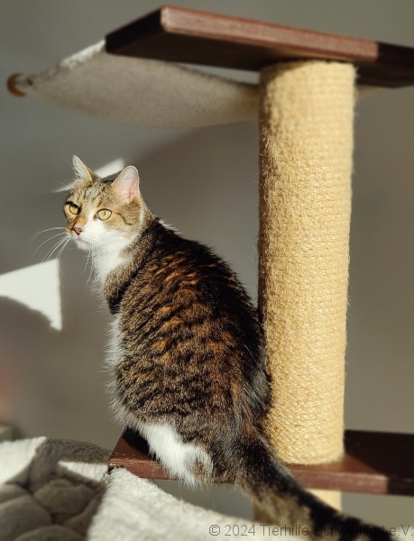Wichtig zu wissen: Ben hat eine Schilddrüsenüberfunktion und braucht derzeit zweimal täglich Tabletten zur richtigen Einstellung, danach nur noch einmal täglich. Zum Glück nimmt er sie super mit einem Leckerli – also kein Stress! Einmal im Jahr ist eine Blutkontrolle nötig, aber sonst ist er eine ganz normale Katze, die einfach nur ein liebevolles Zuhause sucht.
