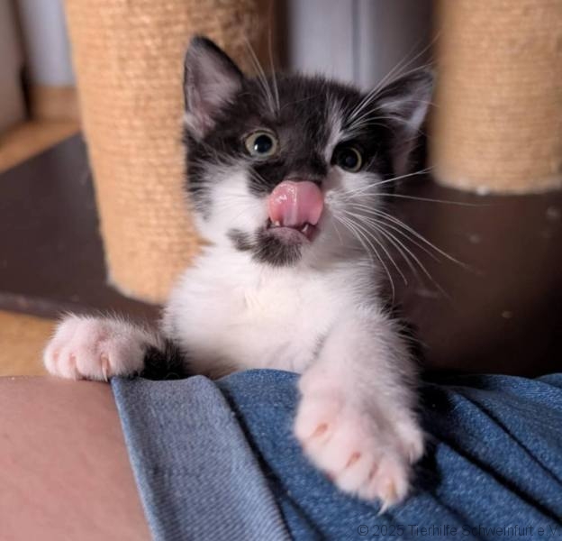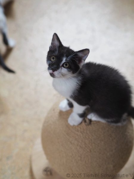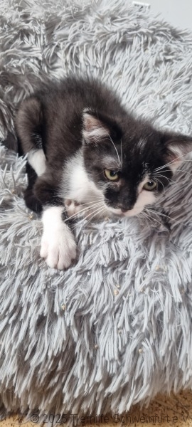 Ich bin ein bisschen vorsichtiger als meine Schwestern, aber fasse dann schon schnell Vertrauen. Da ich ein sogenanntes Flaschenkind bin, kenne ich die Welt da draußen und ihre Gefahren nicht und ganz ehrlich – ich bin auch gar nicht scharf drauf, die kennenzulernen. Mir würde eine geräumige Wohnung vollkommen ausreichen, vielleicht mit einem gesicherten Balkon … mit viel Spielsachen – und ja, auch einem Spielkameraden, bestenfalls im gleichen Alter. Wenn Du noch keine Katze hast, mach Dir keine Sorgen.