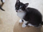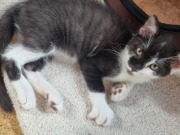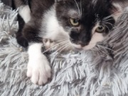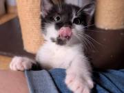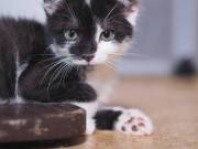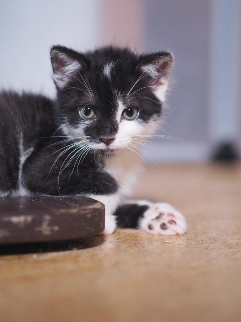 Mein Name ist Clavius und meine drei Schwestern und ich sind sozusagen Osterhäschen, denn wir wurden am Ostersonntag geboren. Unsere Mama war ein Streunermädchen und hat sich anfangs noch um uns gekümmert. Aber nach kurzer Zeit kam sie nicht mehr zu uns. Wir hatten so Hunger und haben ganz arg geweint. Da haben uns nette Menschen auf unsere jetzige Pflegestelle gebracht und unsere Pflegemama hat sich sofort um uns gekümmert. Sie hat aber auch sehr um uns gebangt, weil wir ja gerade erst ein paar Tage alt waren und waren auch ein bisschen krank. Doch wir hatten alle sehr viel Glück und nun schau uns an! Ich habe auch schon mal gehört, wie jemand gesagt hat, dass ich ganz besonders bezaubernd aussehe, mit meinem lustigen, schwarz-weißen Gesicht. Ich bin auch wirklich ein ganz lieber Bub, sehr verspielt und neugierig – letztens hat mir jemand ein Bällchen geschenkt und ich fand das extrem toll!