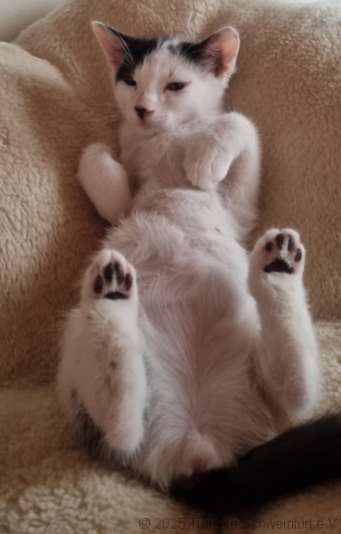 Ich bin wie meine Geschwister ein typisches Flaschenbaby, das bedeutet ich kenne die Gefahren da draußen nicht. Daher wäre eine reine Wohnungshaltung mit viel Platz zum Toben und Rennen vollkommen ausreichend für mich. Aber hey, zu einem gesicherten Balkon sage ich nicht nein! Weil ich so gerne spiele, brauche ich aber auf jeden Fall einen Spielgefährten. Bei Dir wohnt noch keiner? Kein Problem, ich bin ein superverträgliches Mädchen und bringe gerne ein*e Kameraden*in von hier mit. Hier wohnen auch liebe Hunde, mit denen komme ich gut aus. Und auch mit Kindern habe ich schon viele positive Erfahrungen. Tja, was könntest Du noch wissen wollen … Ach komm doch einfach mal vorbei und lern mich kennen. Dann kann ich bestimmt auch alle Deine Fragen zu mir noch beantworten. Ich freue mich schon voll darauf, Dich zu treffen. Ich schwör Dir, Du wirst Dich sofort verlieben, denn ich wirbel mich in Dein Herz und stelle Dein Leben im positiven Sinne auf den Kopf!