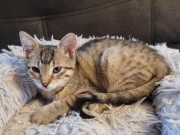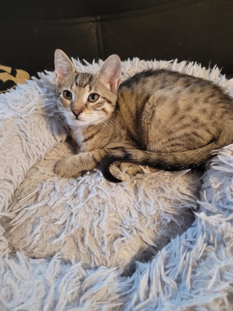 Du liebst mich, Du liebst mich nicht, Du liebst mich, Du liebst mich nicht … Du liebst mich! Da bin ich mir ganz sicher! Ich bin nämlich ein so liebes, so sanftes kleinen Blümchen. Oh, aber vielleicht sollte ich Dir meinen Namen endlich verraten. Huhu, ich bin Daisy. Mein Name passt perfekt zu mir, denn ich bin sein samtigweiches kleines Wesen, sowohl vom hübschen Tabbyfell her, als auch vom Gemüt. Wenn ich mit Dir kuscheln will, dann maunze ich ganz zart und lieblich. Und kuscheln muss ich immer ganz viel. Ich bin auch ein bisschen sehr anhänglich und laufe Dir gerne hinterher. Ich möchte ja auch nichts verpassen. Meine Pflegemama begleite ich zum Beispiel immer, wenn sie die Katzenklos reinigt und passe auf, dass sie alles schön ordentlich macht. Spielen mag ich auch sehr gerne. Mit meinen Geschwistern tobe ich schon ausgiebig, aber wenn ich mit Dir spiele, dann brauchst Du keine Angst vor meinen kleinen Krallen haben. Die kommen so gut wie nie zum Einsatz. Wenn ich mal für mich alleine bin, dann sitze ich gerne auf dem Fensterbrett und beobachte verträumt die Vögel. Manchmal fange ich auch ein paar Fliegen. Irgendwie habe ich das schönste Leben und bin sehr glücklich, dass es jetzt so ist. Die ersten Tage meines Lebens waren nicht so schön, denn ich habe meine Mama verloren. Sie wurde überfahren und ließ meine Geschwisterchen und mich zurück. Aber wie ein kleines Wunder, wir wurden gefunden und die Pflegemama hat sich wirklich viel Mühe gegeben, so daß wir nun hübsche Katzenkinder sind, die endlich ausziehen dürfen. Ich wünsche mir ein wunderschönes Zuhause mit hübschen Fenstern und vielleicht auch einem gesicherten Balkon? Weil rausgehen mag ich nicht unbedingt. Dadurch, dass nicht unsere leibliche Mama uns da draußen aufgezogen hat, haben wir nie gelernt, scheu zu sein und können Gefahren schlecht einschätzen. Lieber drinnen bleiben und kuscheln.