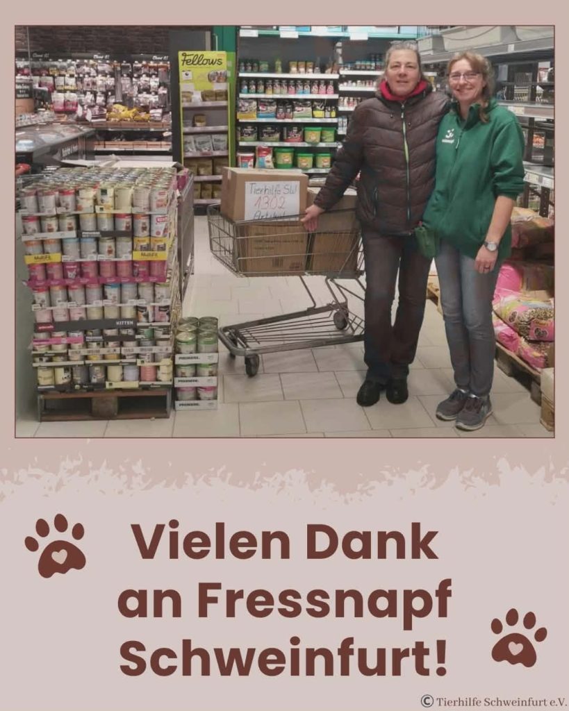 Während der Adventszeit wurde fleißig gesammelt. Jetzt durften wir uns freuen . 1302 Artikel konnten uns von der Fressnapf Filiale in Schweinfurt übergeben werden.