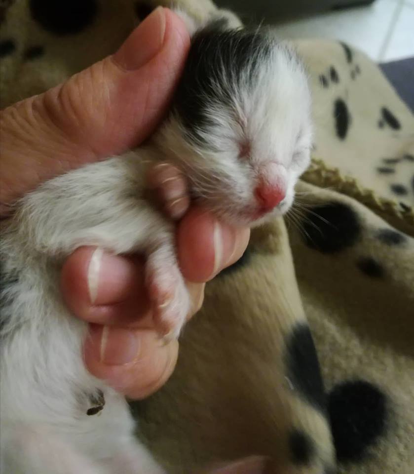 Nach Erstversorgung in der Tierklinik ist das kleine Kerlchen gestern Nachmittag dann bei uns auf Pflegestelle gezogen. Durch die Unterkühlung hat er einen Infekt und kann alle gedrückten Daumen gebrauchen. Nun bekommt er von seiner Pflegestelle alle 2 Stunden sein Fläschchen (auch in der Nacht).