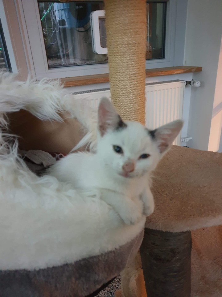 Gestern Abend erhielten wir einen Hilferuf. Aufmerksame Tierfreunde hatten auf einem freien Feld zwischen zwei Ortschaften ein kleines Kätzchen gesehen. Eine unserer Ehrenamtlichen konnte zusammen mit den Meldern nach stundenlanger Fangaktion zum Teil bei strömenden Regen zum Glück das Kleine sichern. Das Kätzchen ist definitiv Menschen gewohnt, unter anderem voller Flöhe und leidet unter einer Augenentzündung. Nun darf es sich auf seiner Pflegestelle erholen und gesund werden und sucht anschließend ein Zuhause.