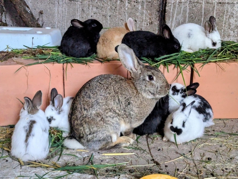 Das war aber auch echt gut so, denn meine Pflegemama hier hatte ganz viel Geduld mit mir und hat sich gut gekümmert und mir viel leckeres Grünzeug organisiert. Die hat nämlich ganz schnell mein kleines Geheimnis gelüftet und gleich erkannt, daß ich trächtig war und viel Energie brauchte. Und schwupps, eine Woche später bin ich Mami von neun wunderhübschen und winzigen Mümmelchen geworden. Richtig gut, daß ich nicht allein in der wilden Natur war und so meinen Babys behütet aufziehen konnte. Denen geht’s auch wirklich prima und wir sind, wenn meine Babys alt genug sind (ab ca. Mitte Juni), bereit auszuziehen und eigene kleine Zuhause zu finden.