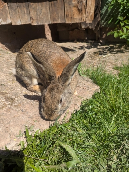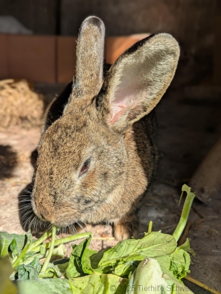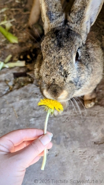 Und ich dachte, ich fange mal an. Also, ich bin ein wirklich liebes Mädchen, anfangs ein bißchen zurückhaltend. Aber erfahrene Hände, die wissen, daß Kaninchen keine Kuscheltiere sind, werden viel Freude mit mir haben. Was ich brauche, ist ausreichend Platz zum Rumhoppeln und Haken schlagen, reichlich leckeres Grünzeug, hier und da eine liebevolle Streicheleinheit und ach ja, Gesellschaft! Kaninchen sind nicht gerne alleine, darum würde ich sehr gerne entweder zu einem netten bereits vorhandenen Langöhrchen ziehen. Oder ich nehme eines oder zwei meiner süßen Kinderchen mit. Wie klingt das für Dich? Wenn Du mir das bieten kann, verspreche ich, Dir immer ein Lächeln ins Gesicht zu zaubern. Komm uns doch einfach mal besuchen und lerne uns kennen. Wir sind wirklich sehr verliebenswert. Ich freue mich schon auf Dich!