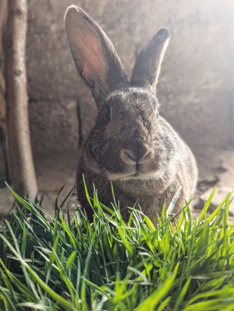 Hopp Hopp Hoppla! Das ist nicht nur mein ganz persönliches Hoppelgeräusch, das ist tatsächlich mein Name. Den habe ich auf meiner Pflegestelle bekommen, als ich Anfang März hier einzog. Und wie bin ich überhaupt dorthin gekommen? Also, tatsächlich bin ich zuvor mit drei anderen Kaninchen unterwegs gewesen, als wir entdeckt wurden. Zwei von uns sind leider nicht mehr zu uns zurückgekommen, wahrscheinlich einem Raubtier zum Opfer gefallen. Das dritte wurde von einer Spaziergängerin eingefangen und ins Tierheim gebracht. Und dann war ich ganz alleine. Das war nicht so schön, aber einfangen lassen wollte ich mich dann doch nicht so schnell. Die Mitglieder der Tierhilfe waren aber echt ausdauernd und haben sich ganz viel Mühe gegeben und schließlich haben sie mich dann doch geschnappt.