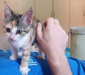weiblich, ca. 8 Wochen, 1 x entwurmt – die Anführerin der Viererbande, immer vorne dran, die aber auch gerne schmust und auf einem drauf liegt. Keine Einzelhaltung.