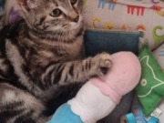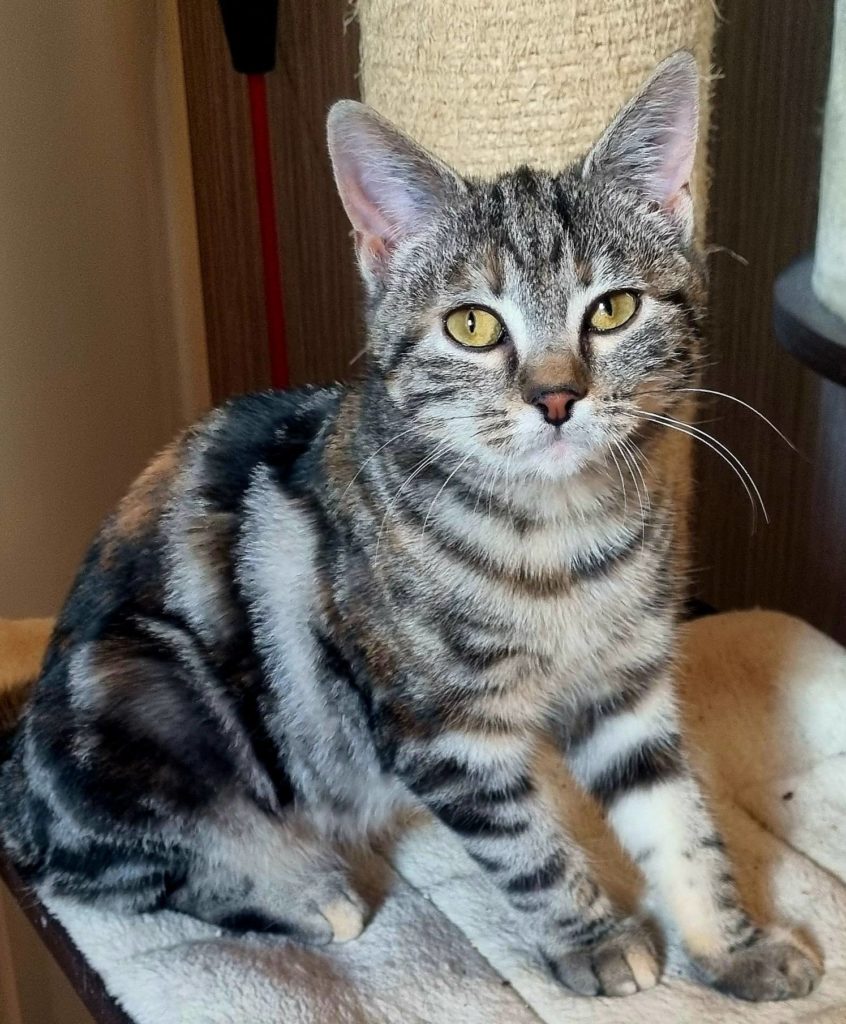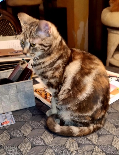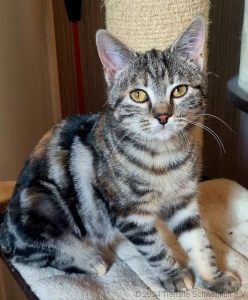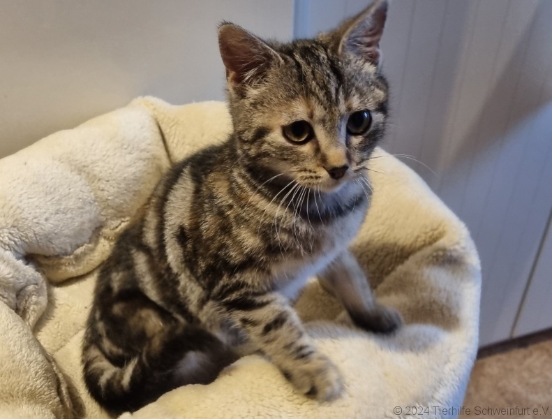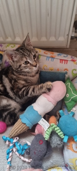 Jetzt kennt Ihr mich schon ein wenig, aber vielleicht möchte mich ja jemand persönlich kennenlernen, mich besuchen kommen und dann adoptieren? Ich bin wirklich ein sehr umgängliches Tigerchen (mit wunderhübschen roten Abzeichen am Rücken), eine reine Wohnungshaltung mit genügend Platz würde mir wahrscheinlich auch genügen und wenn ein gesicherter Balkon dabei wäre, das fände ich besonders toll. Ich brauche auch unbedingt eine Kameradin im passenden Alter, am besten eine, die genauso lieb, verspielt und nett ist wie ich. Kommt schnell vorbei und ich kuschel mich ganz schnell in Eure Herzen.