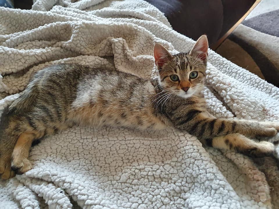 Hier auf der Pflegestelle wohnt eine nette Dosenöffnerin, die mit mir kuschelt und spielt und ich muss sagen ich LIEBE kuscheln 😊 leider bin ich noch etwas schreckhaft, aber das wird sich schon bald legen und dann kann ich auch auf die Suche gehen, nach einem eigenem Zuhause..