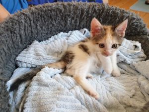 weiblich, ca. 8 Wochen, 1 x entwurmt – die Verspielte, sie liebt Bällchen mit Rassel, schaut meist erst einmal den anderen zu, bevor sie richtig mit einsteigt. Keine Einzelhaltung