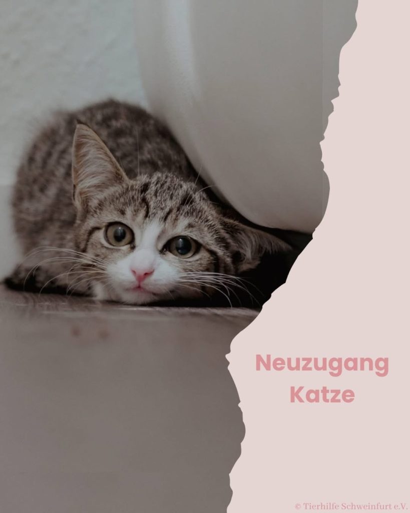 Kätzchen 2 – Trägt eine stylische weiße Gesichtsmaske (nein, kein Fasching, das ist ihr Ernst), ist momentan noch sehr ängstlich und am liebsten im Versteckmodus . Aber auch sie wird mit Zeit und Liebe auftauen.