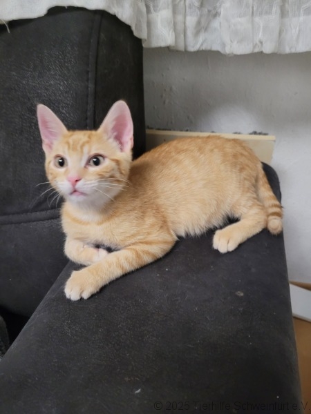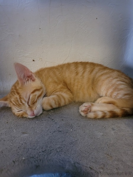 Hallo, mein Name ist Paco und ich bin ein unwiderstehlich süßer Rotschopf. Ich bin hier mit meinen Geschwistern zur Tierhilfe gekommen, nachdem wir mitten in der Nacht bei strömenden Regen gerettet wurden. Wir haben so ein Glück, das weiß ich, denn als wir ankamen, da ging es uns erst nicht so gut. Wir waren komplett durchnäßt und fast am Verhungern. Aber das ist nun viele Wochen her, fast wie ein anderes Leben. Jetzt geht’s uns richtig gut und wir dürfen ausziehen zu unserem ganz eigenen Menschen. Also, meine neue Mami oder Papi sollten mir am Anfang ein bißchen Zeit geben. Wenn da so ein großer Zweibeiner auf mich zukommt, dann habe ich doch etwas Angst. Aber wenn Du langsam zu mir runterkommst, so daß ich Dich auch besser sehen kann, dann lasse ich mich total gerne streicheln – besonders am Flauschebauch. Und fange sofort laut zu schnurren an, da wird einem ganz warm ums Herz. Ich habe auch eine lustige Besonderheit, nämlich einen kleinen Knick in meinem Schwänzchen. Das haben manche Kätzchen, ist kein Problem, sieht nur anders aus.