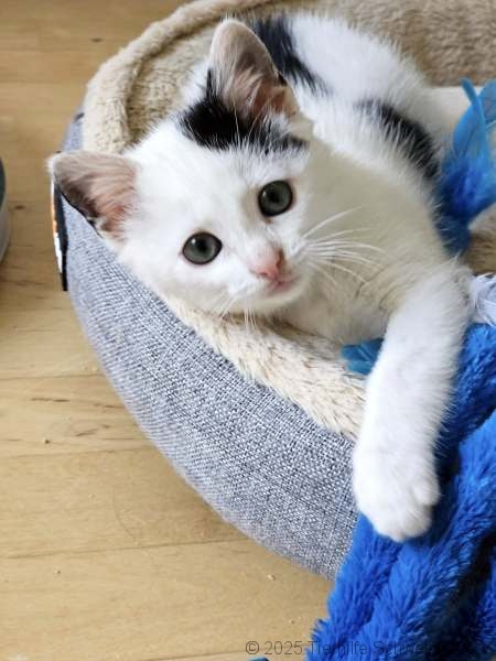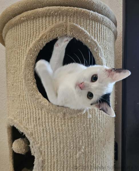 Aus dem kleinen Kerl ist inzwischen ein stattlicher Jungkater geworden. Er liebt es zu spielen – am liebsten Ball oder Angel – und mischt sowohl die Kitten als auch die erwachsenen Katzen der Pflegestelle fröhlich auf. Tassilo kommt mit allen gut zurecht und ist ein sozialer, freundlicher Mitbewohner.