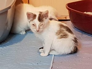 Diese beiden armen Kätzchen sind vorgestern bei uns auf Pflegestelle gezogen. Sie stammen von einer Kastrationsaktion im Landkreis Hassberge. Auf einem Bauernhof haben sich zugelaufene Katzen vermehrt und sind den Leuten über den Kopf gewachsen.
