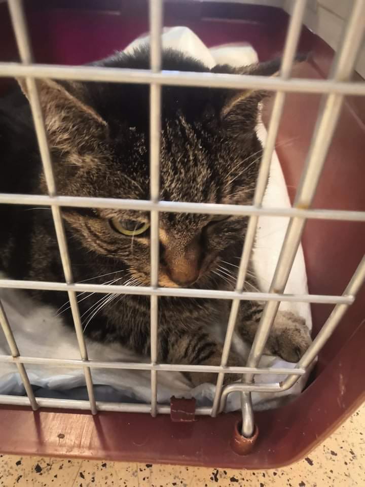 Sie ist vor 2 Monate verschwunden, trotz intensiver Suche konnte ihre Besitzerin sie nicht finden. Da sie draußen anscheinend nicht genug zu fressen bekam, magerte sie in kurzer Zeit so stark ab, dass ihre Leber stark geschädigt wurde. Noch ein paar weitere Tage draußen und sie hätte nicht überlebt.Vielen Dank an die aufmerksame Finderin, die uns angerufen hat und auch an unsere Kollegin, die die Dornenbüsche und die damit einhergehenden, nicht gerade wenigen, Kratzer nicht abgeschreckt hat!