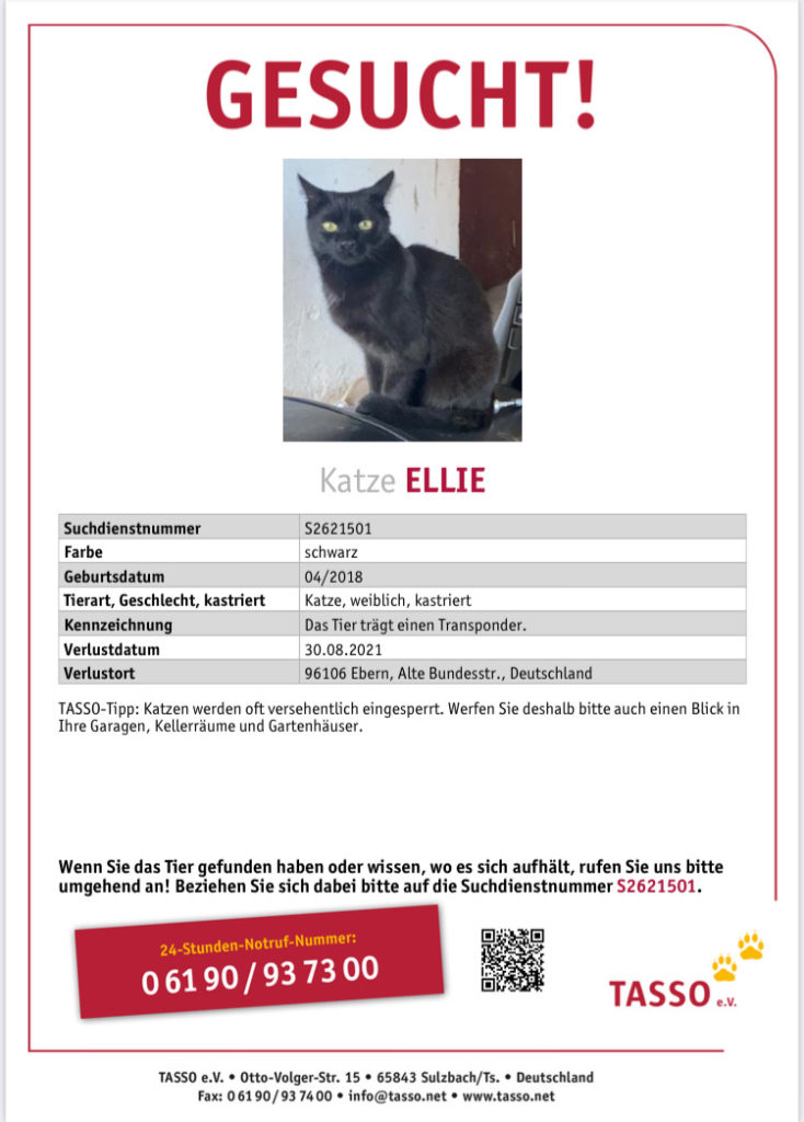 Elli ist nach dem Freigang nicht mehr nach Hause gekommen um jeglichen Hinweis wären wir sehr dankbar