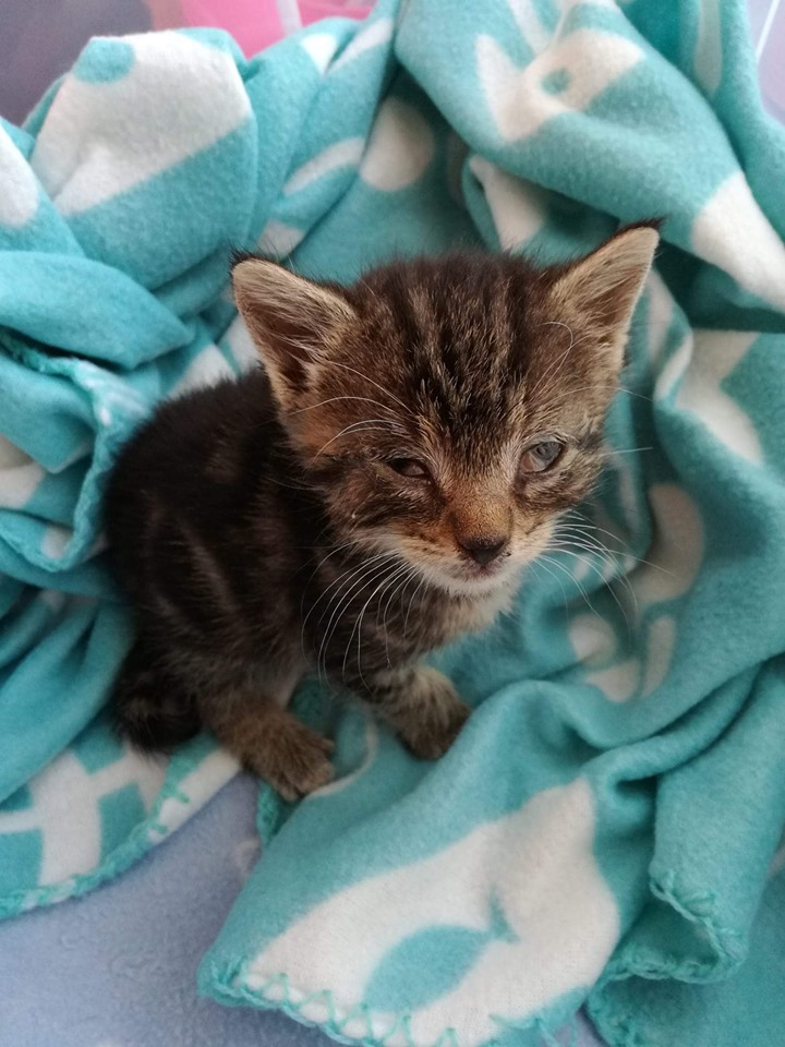 Mitte dieser Woche zog der kleine, vier Wochen alte Marvin ein. Vollkommen apathisch, total unterkühlt, eitrige Augen, Schnupfen, Würmer …. sozusagen das volle Paket.